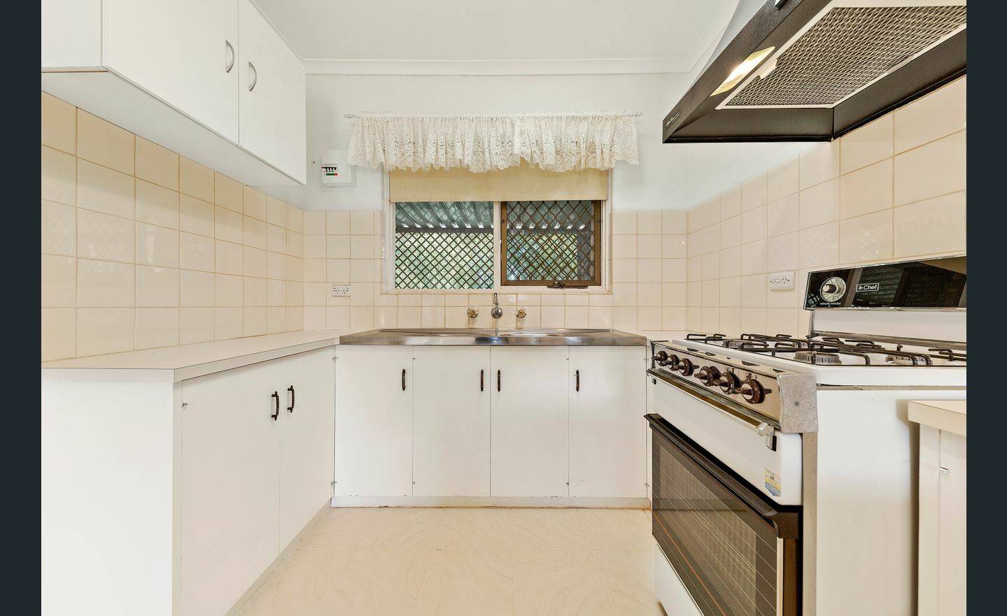 The floorplan is simple and functional with two good-sized bedrooms, both with built-in robes and access to the central bathroom with bath. There is a well-equipped with gas kitchen with plenty of storage and bench space, plus a meals area.