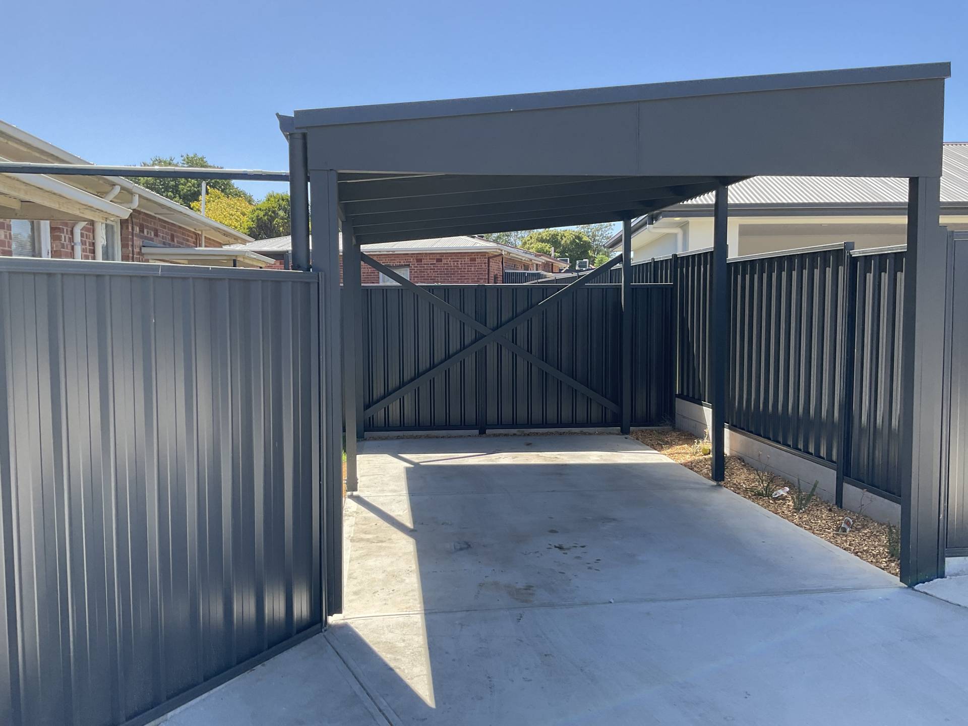 •    Carport with roller door